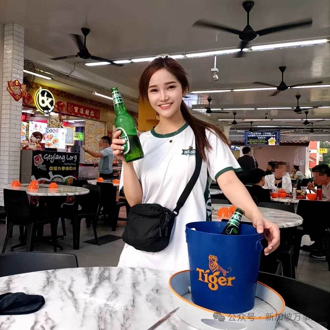 上一个在新加坡爆火的“啤酒西施”叫Yumi,在Hong Lim的小贩中心推销啤酒。