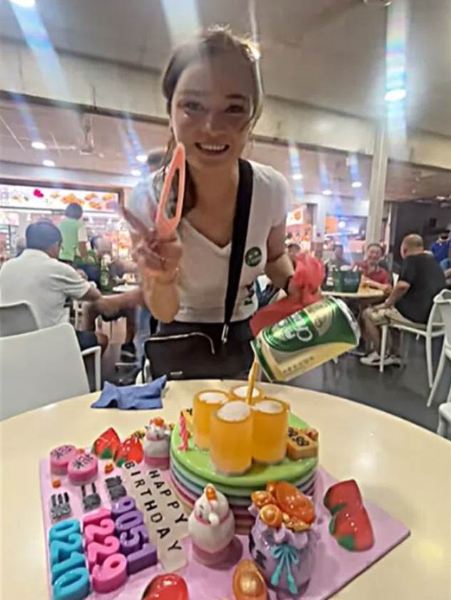 新加坡啤酒女郎庆生视频爆火30名酒客为她庆祝生日送8个生日蛋糕和$160红包