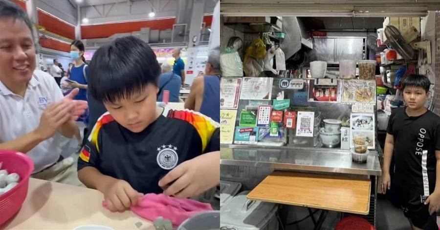 七旬阿嬷熟食中心卖粥导致腰痛脚痛,12岁孝顺孙去年开始利用课余时间到摊位帮忙,获公共服务统筹部长兼国防部长陈振声贴文点赞。