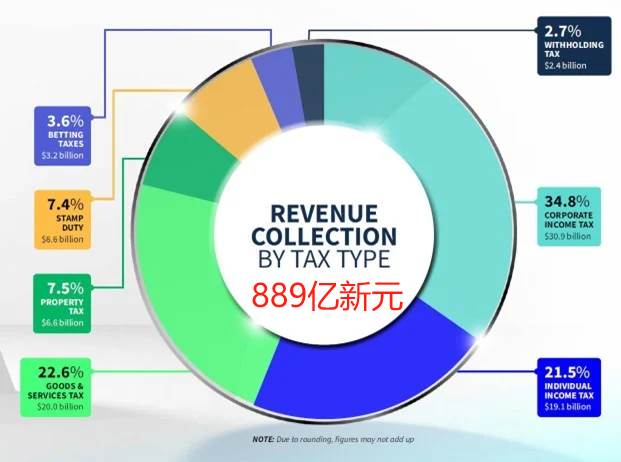 · 公司税占比最高,达到34.8%,一共收了309亿新元;
